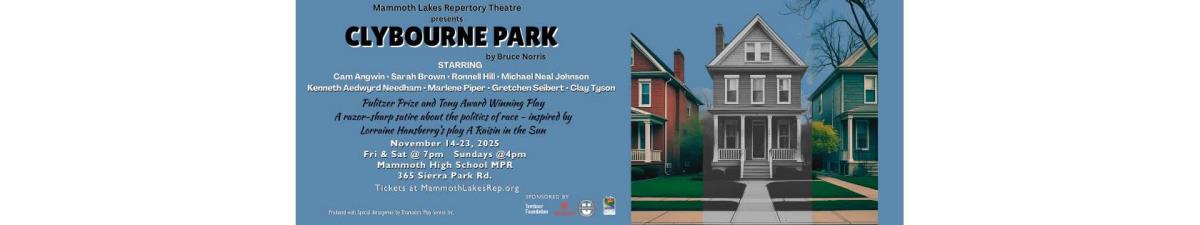 You don't want to miss this opportunity to see the Pulitzer Prize & Tony Award Winning Play - CLYBOURNE PARK. A razor-sharp satire about the politics of race - inspired by the play A Raisin In The Sun. Brought to you by Mammoth Lakes Repertory Theatre.